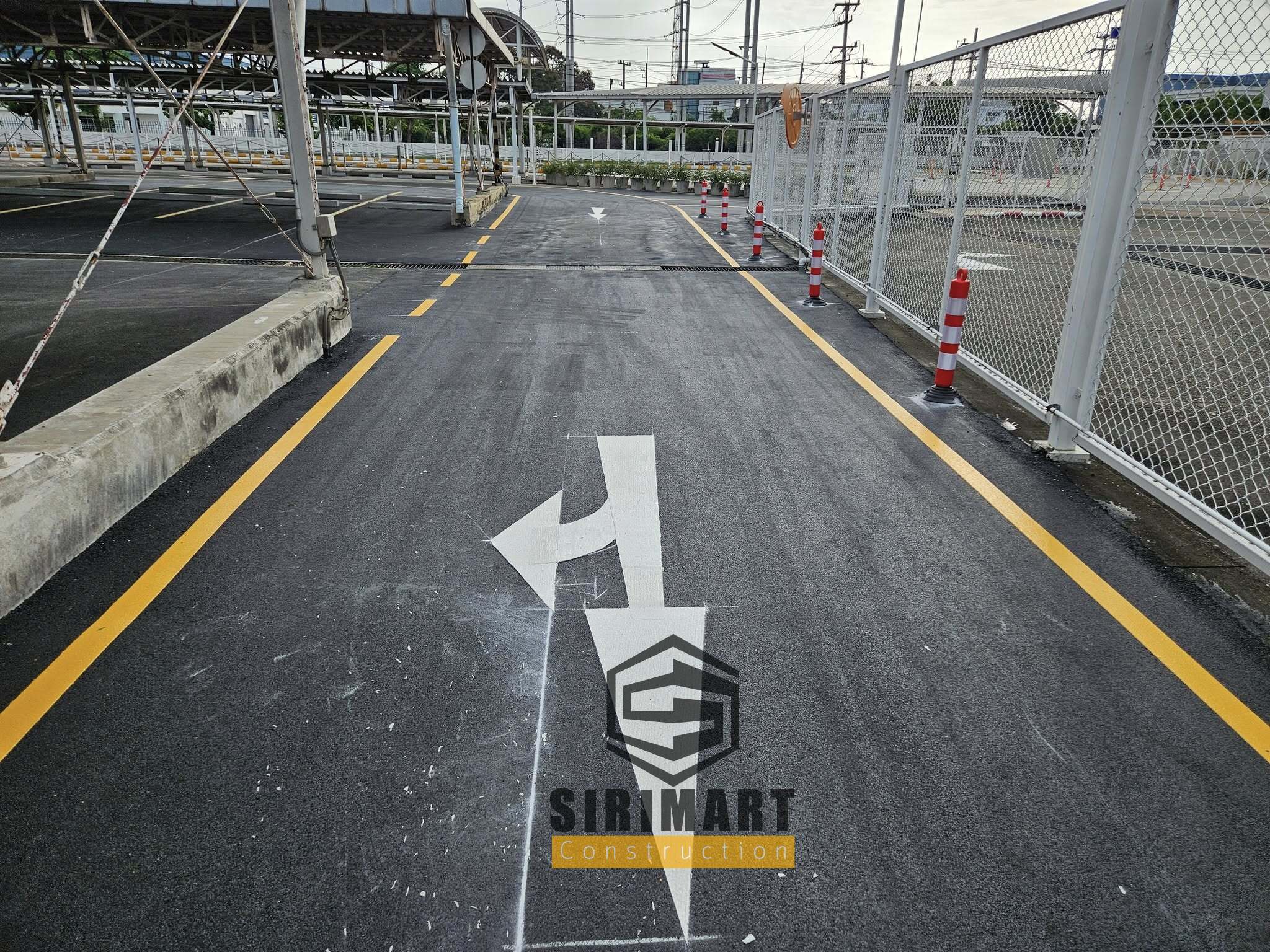 - ตีเส้นจราจร และช่องจอดด้วยสีเทอร์โมพลาสติก