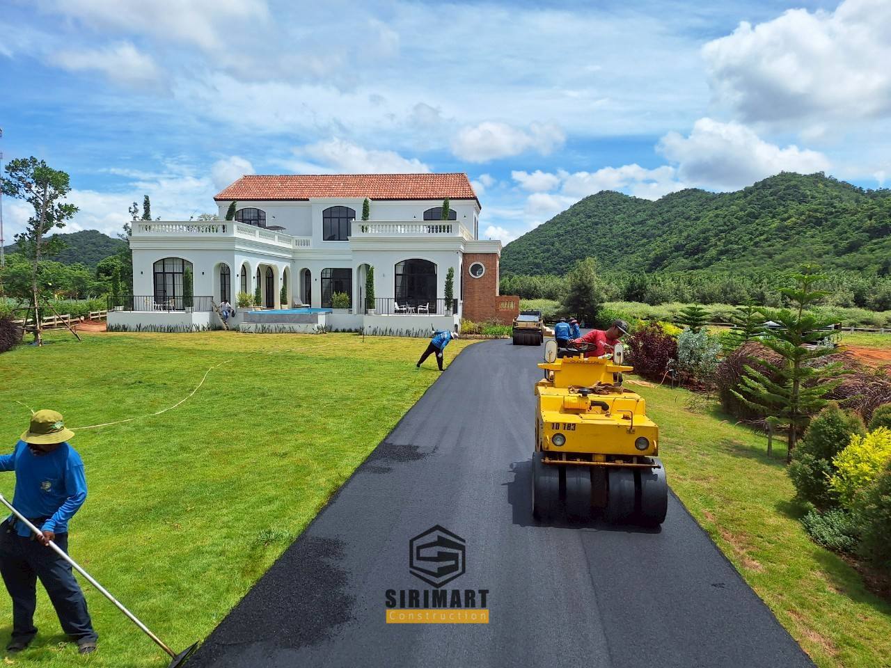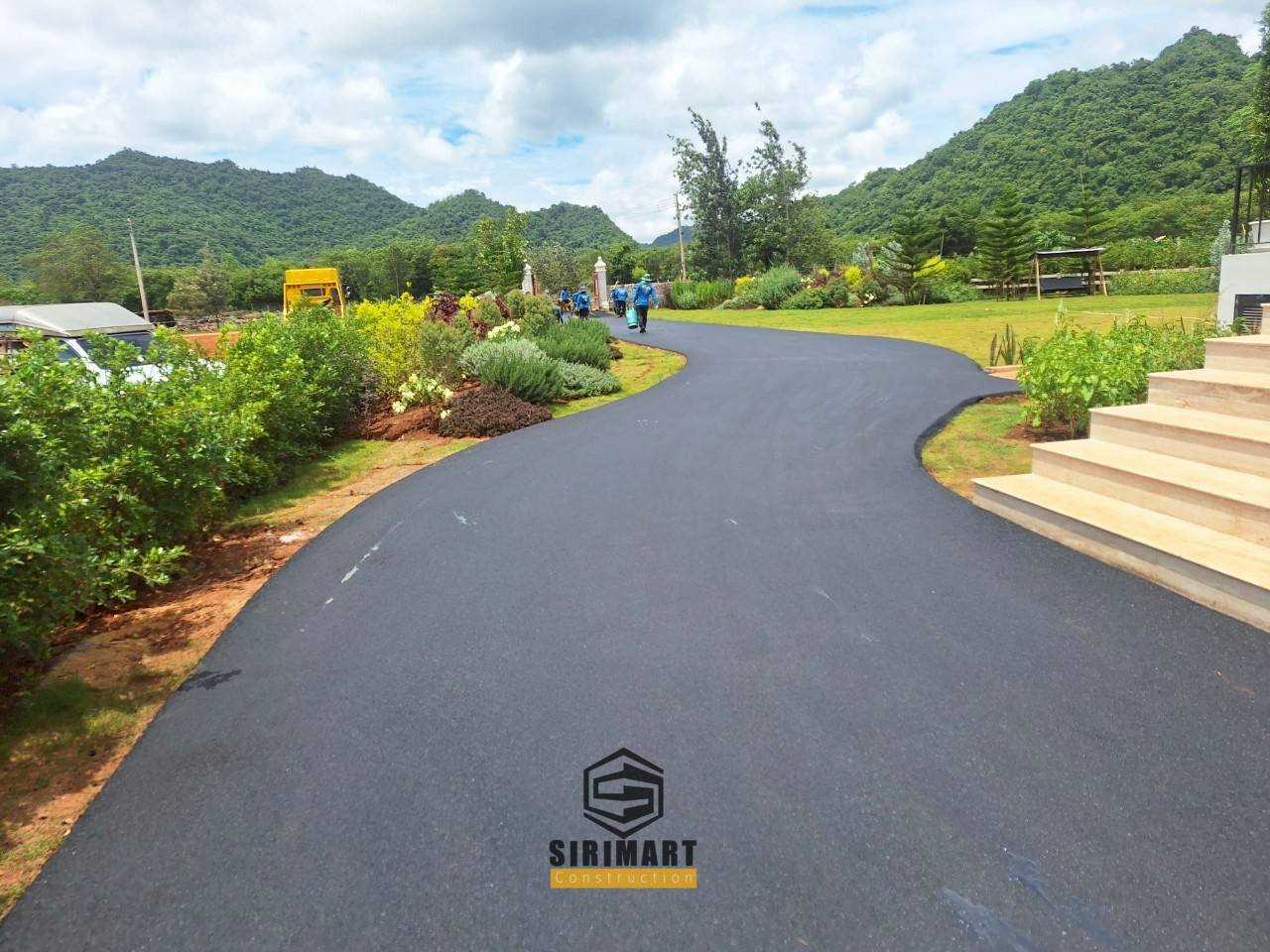 งานลาดยางมะตอย ทางเข้าบ้านตัวอย่าง